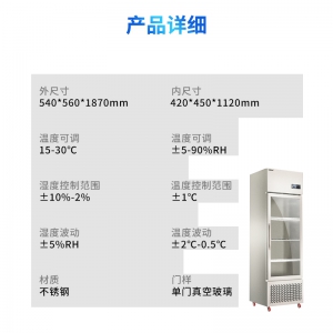 2、柜 內:裝有原裝瑞士進口溫濕探頭,精準度高,波動值小于3%,終生無需矯正。